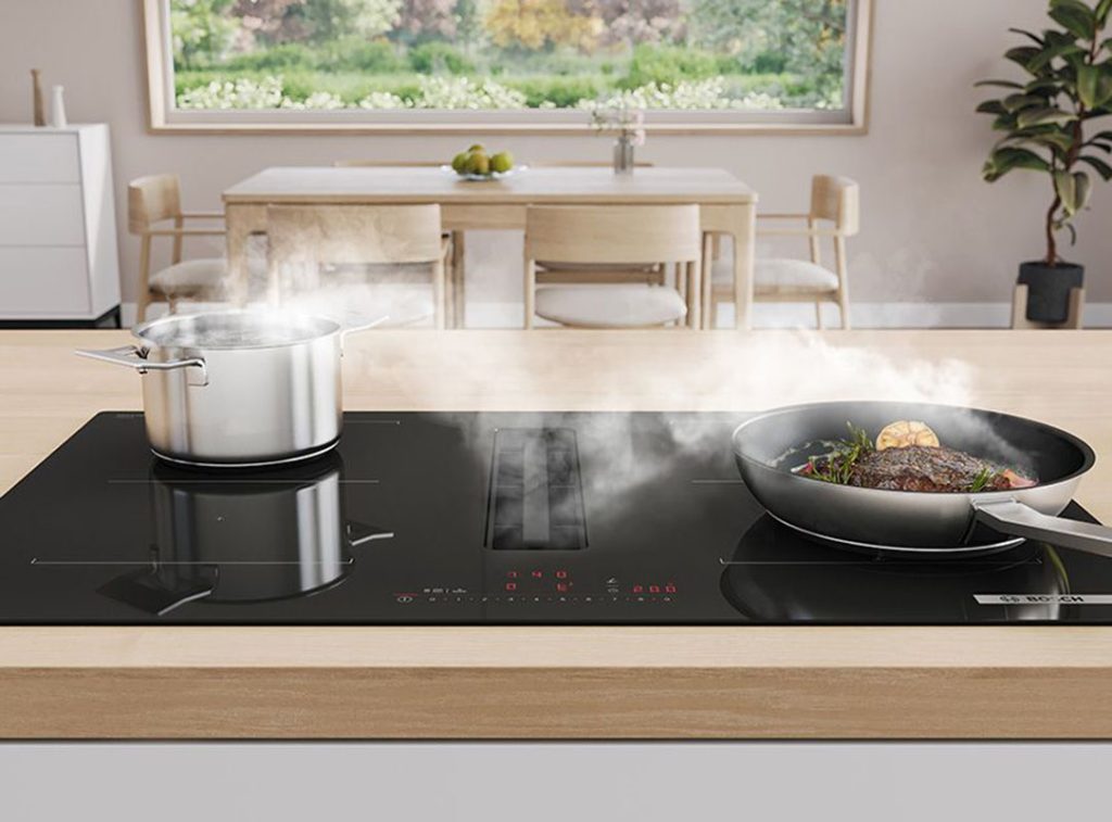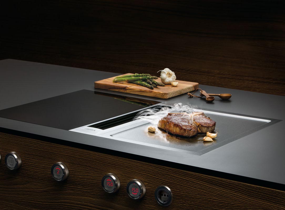 - häufig mit integriertem Dunstabzug (z. B. BORA, Siemens, Miele) arbeiten,